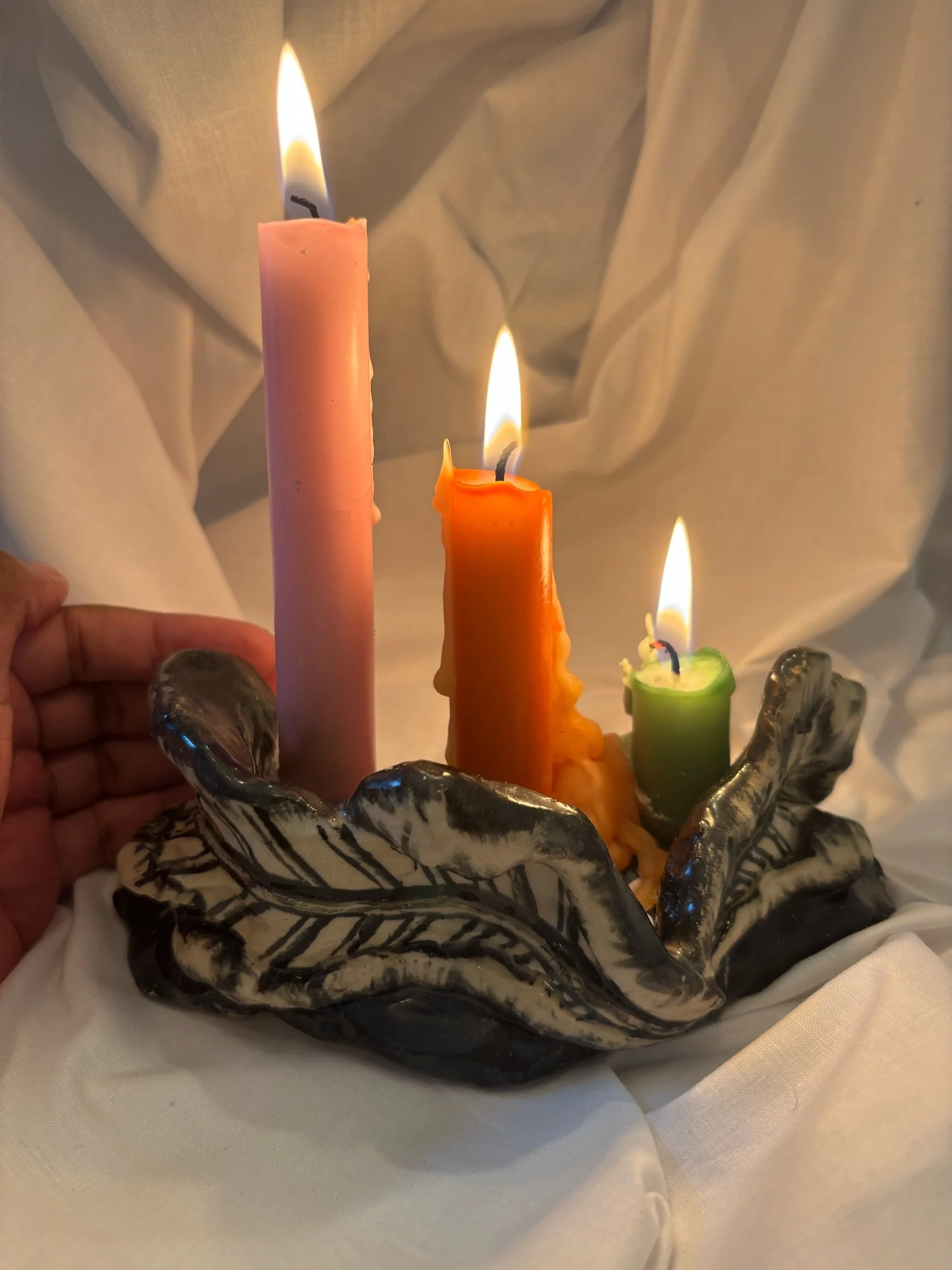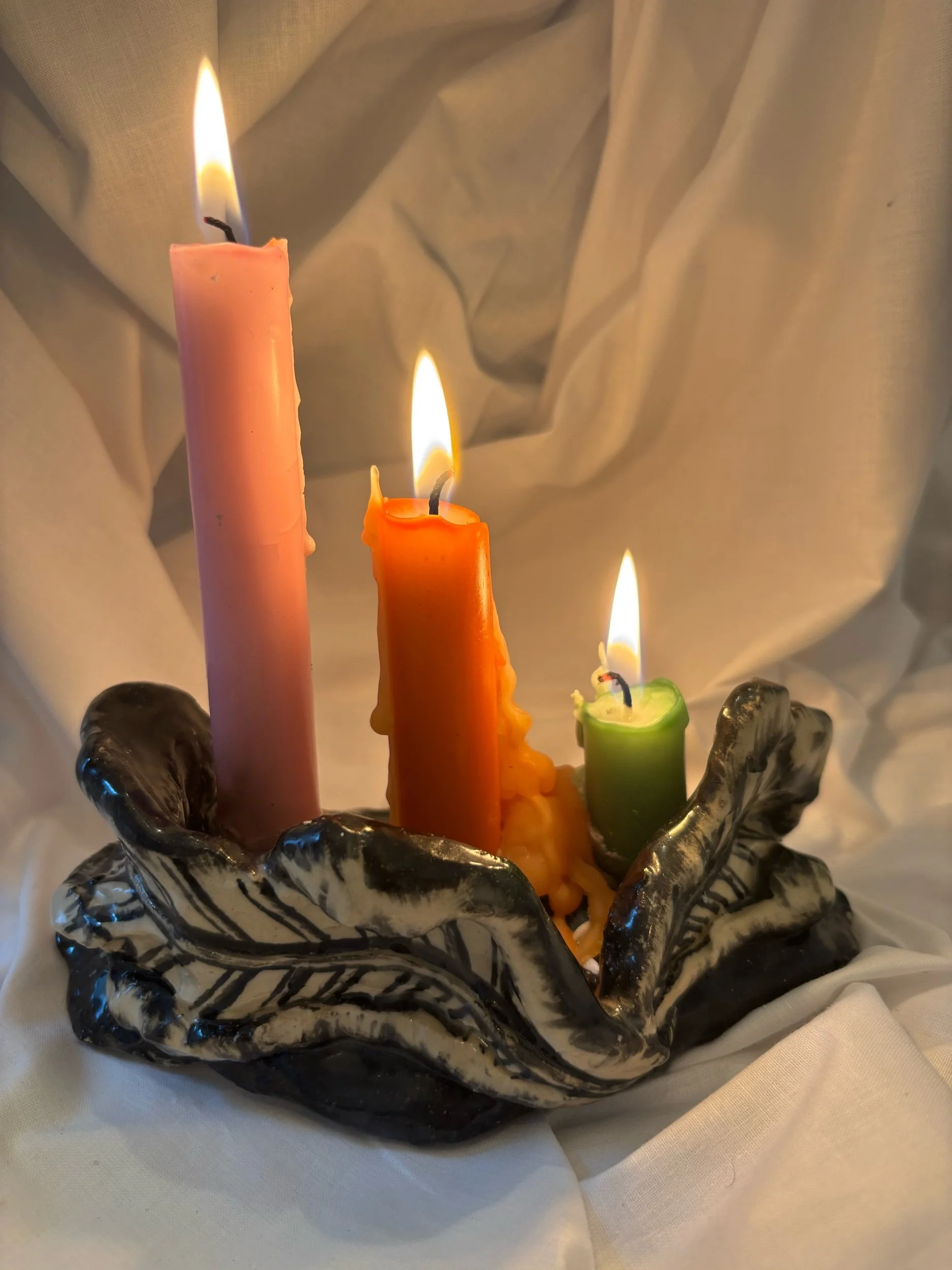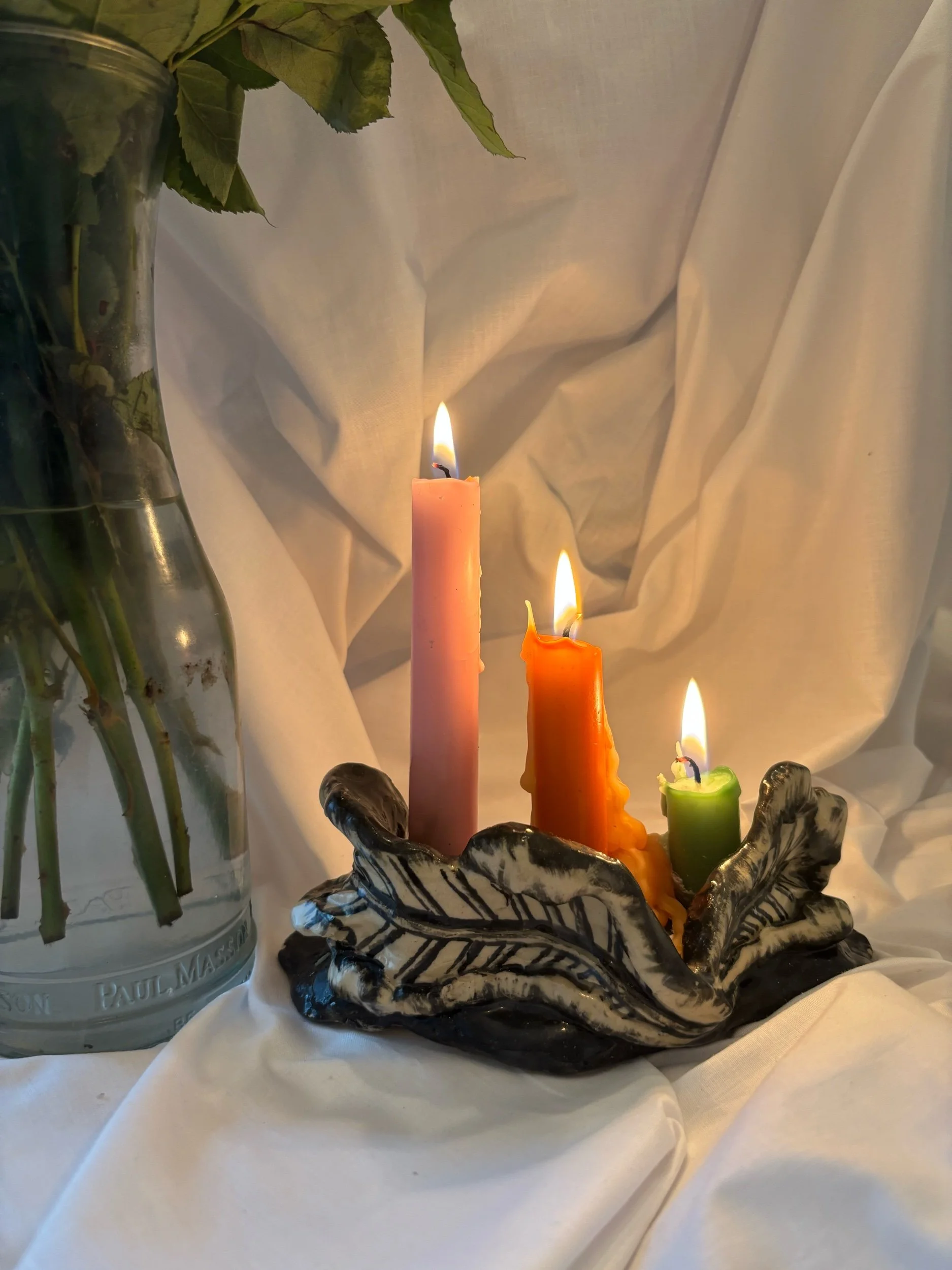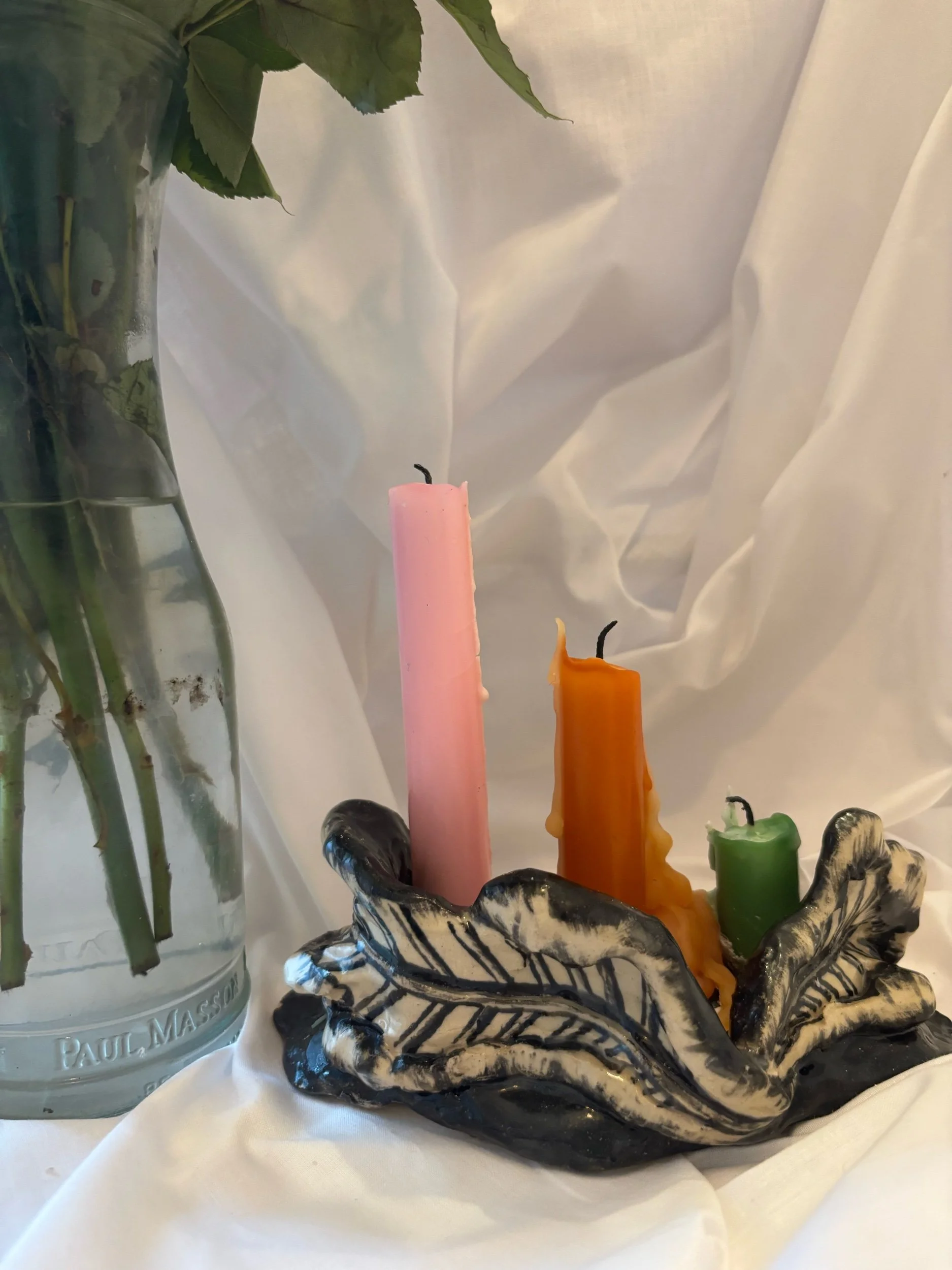Inspired by plants along a summer hikes, this candle holder is handmade from stoneware clay and delicately painted with stylised leaves. A one of a kind candleholder, perfect for cosy dinner parties all year round.