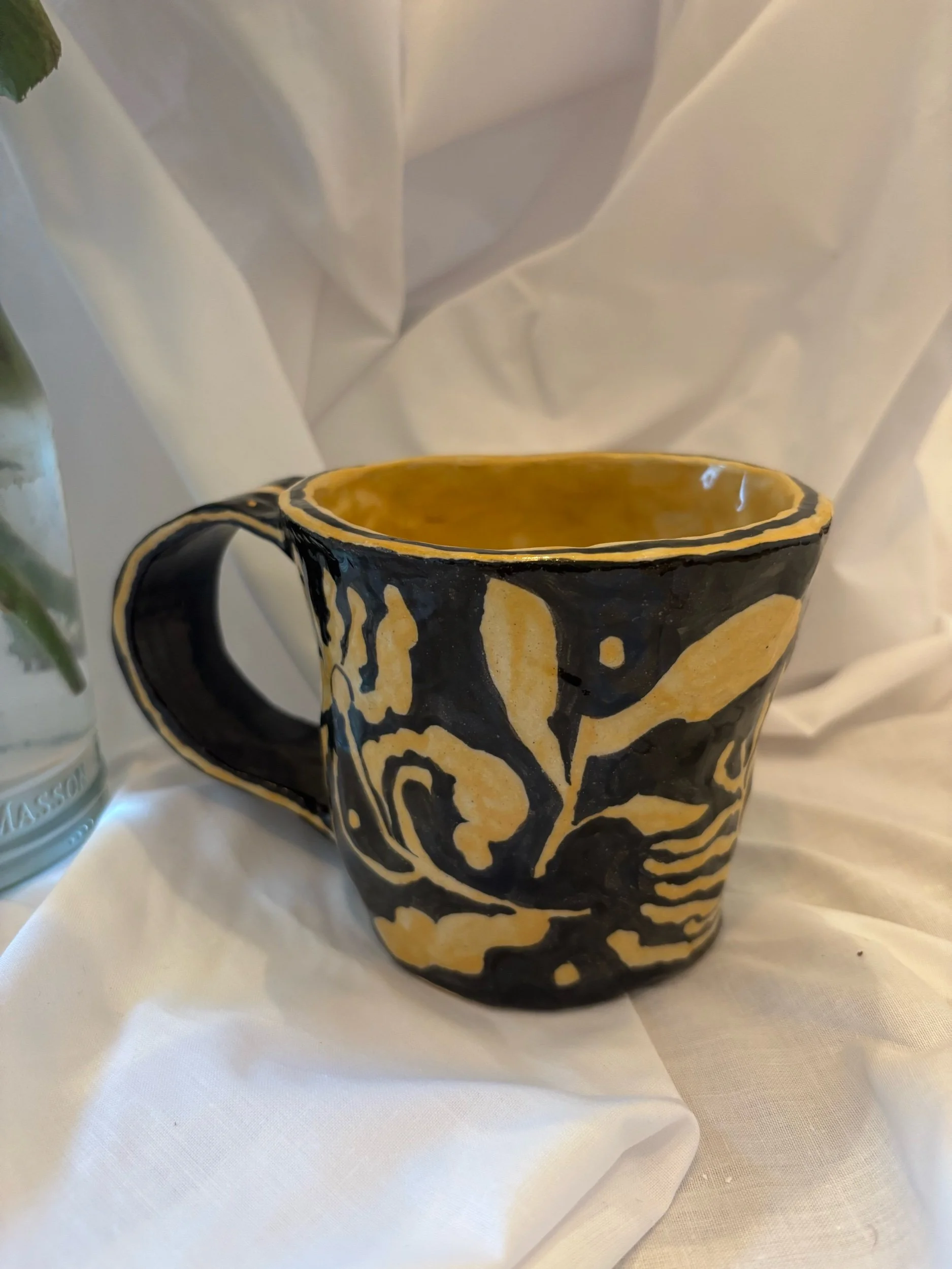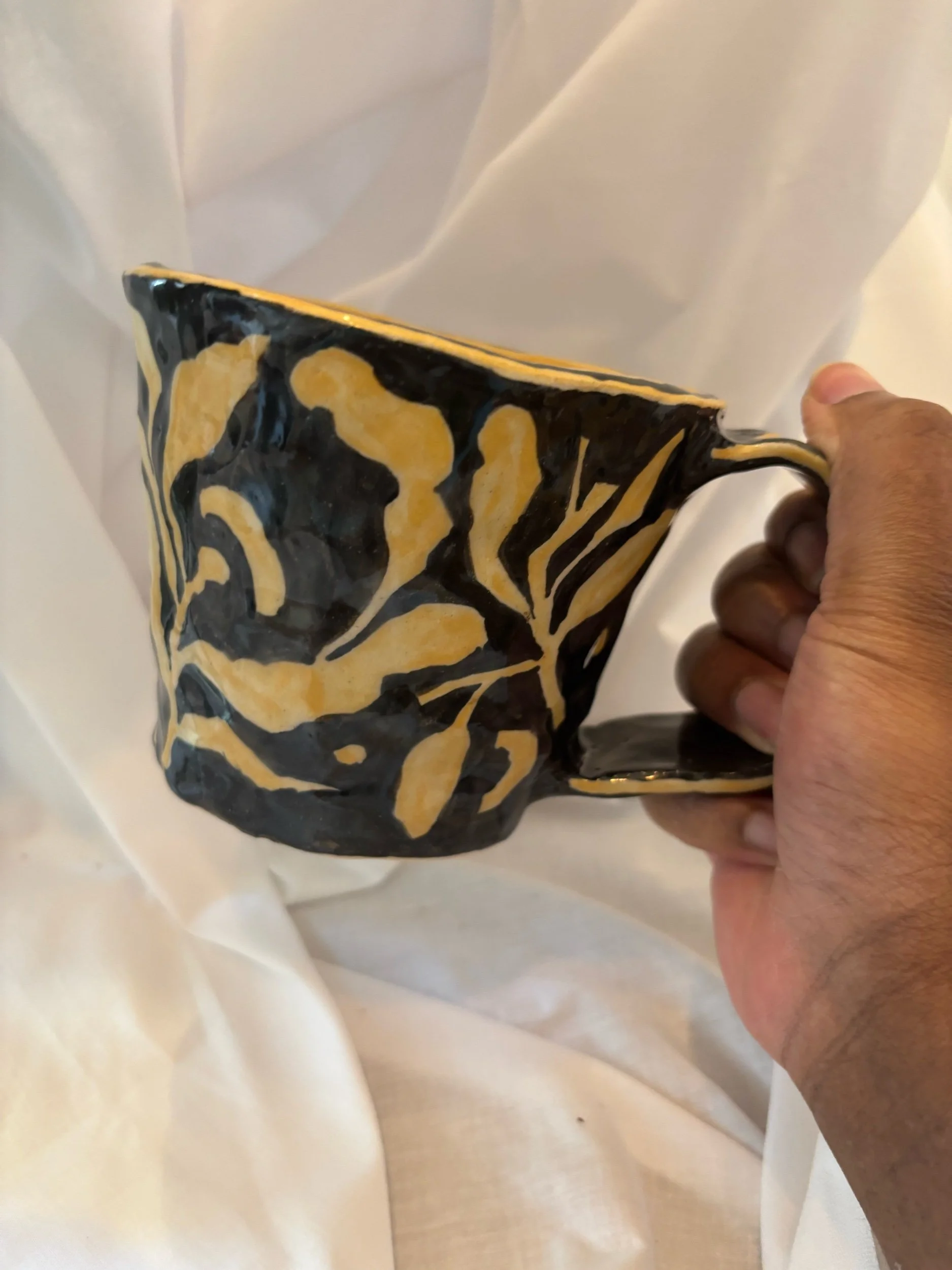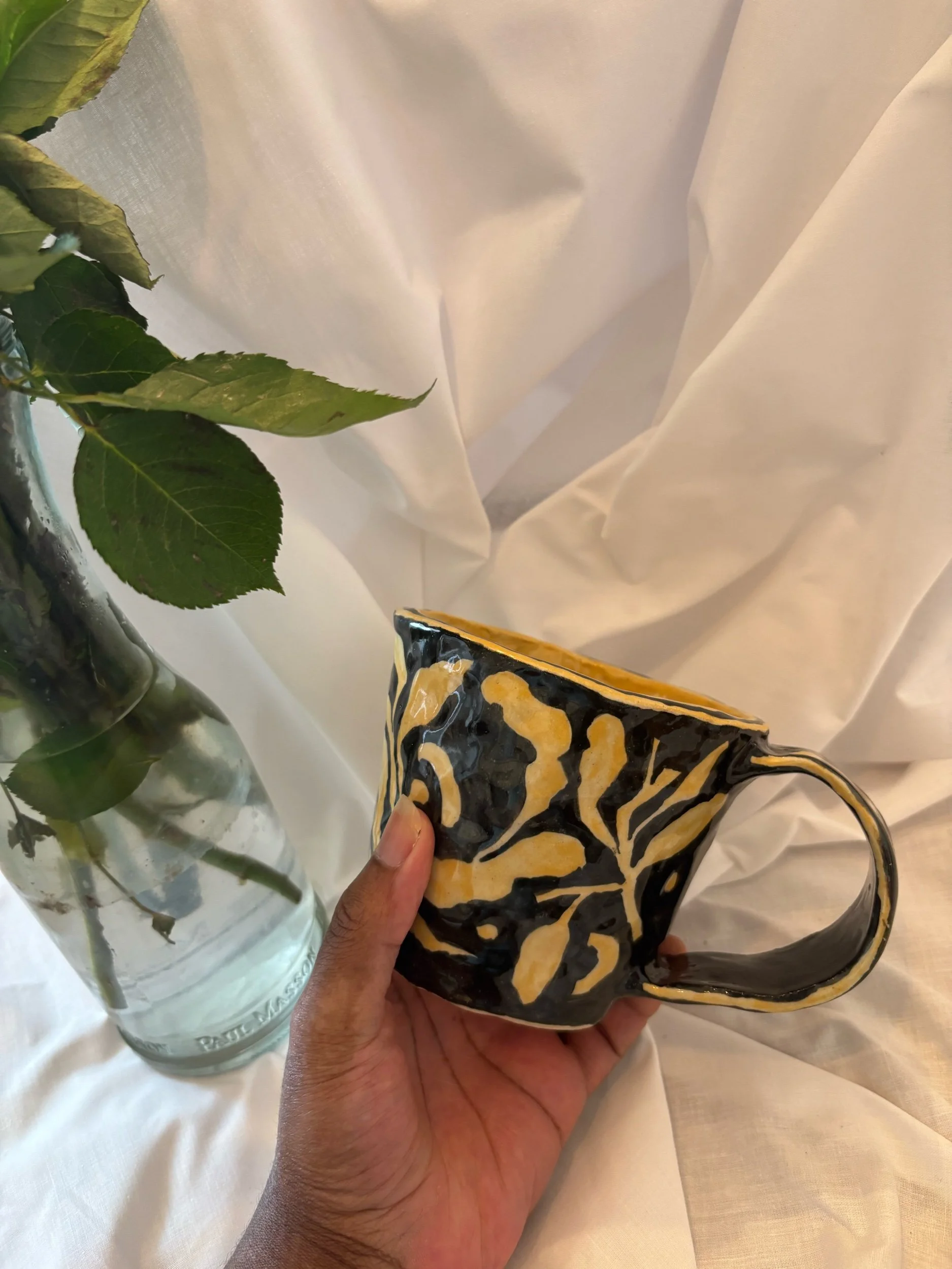 Inspired by walks as the leaves change, this chunky mug is handmade from stoneware clay and delicately painted with a memories of leaves and sunshine peaking through. A one of a kind hand-painted mug, perfect for your cosy evenings all year round.