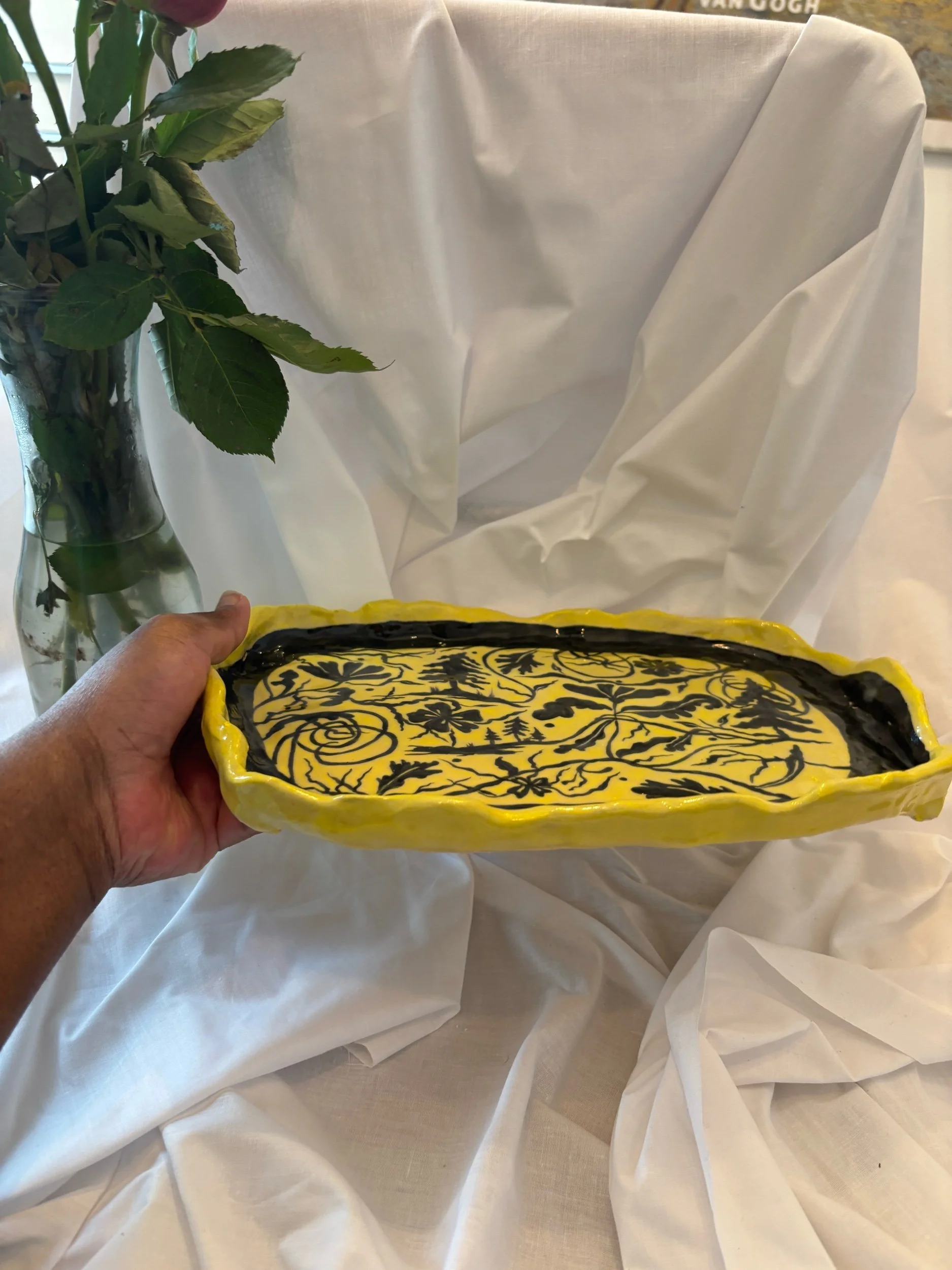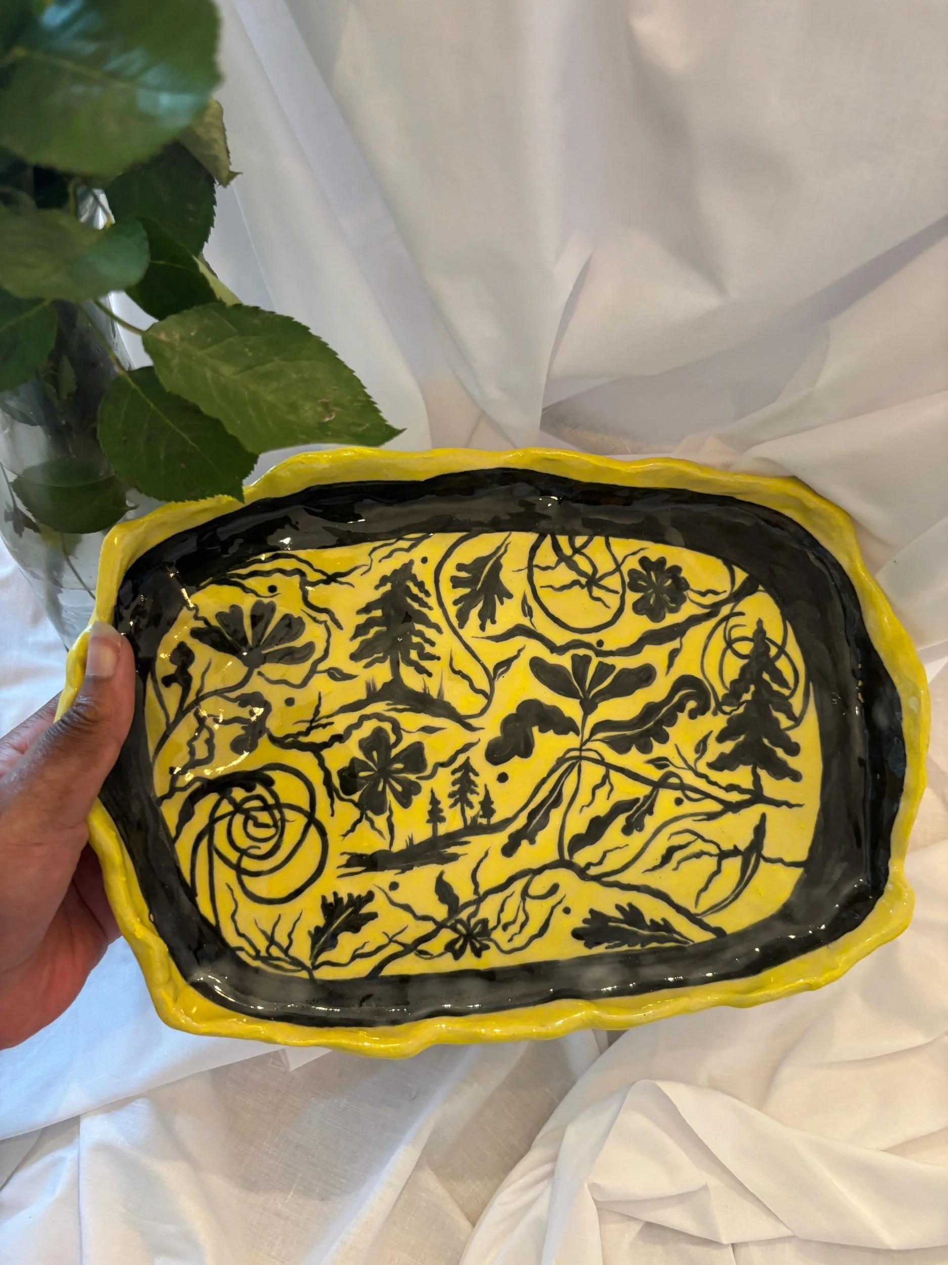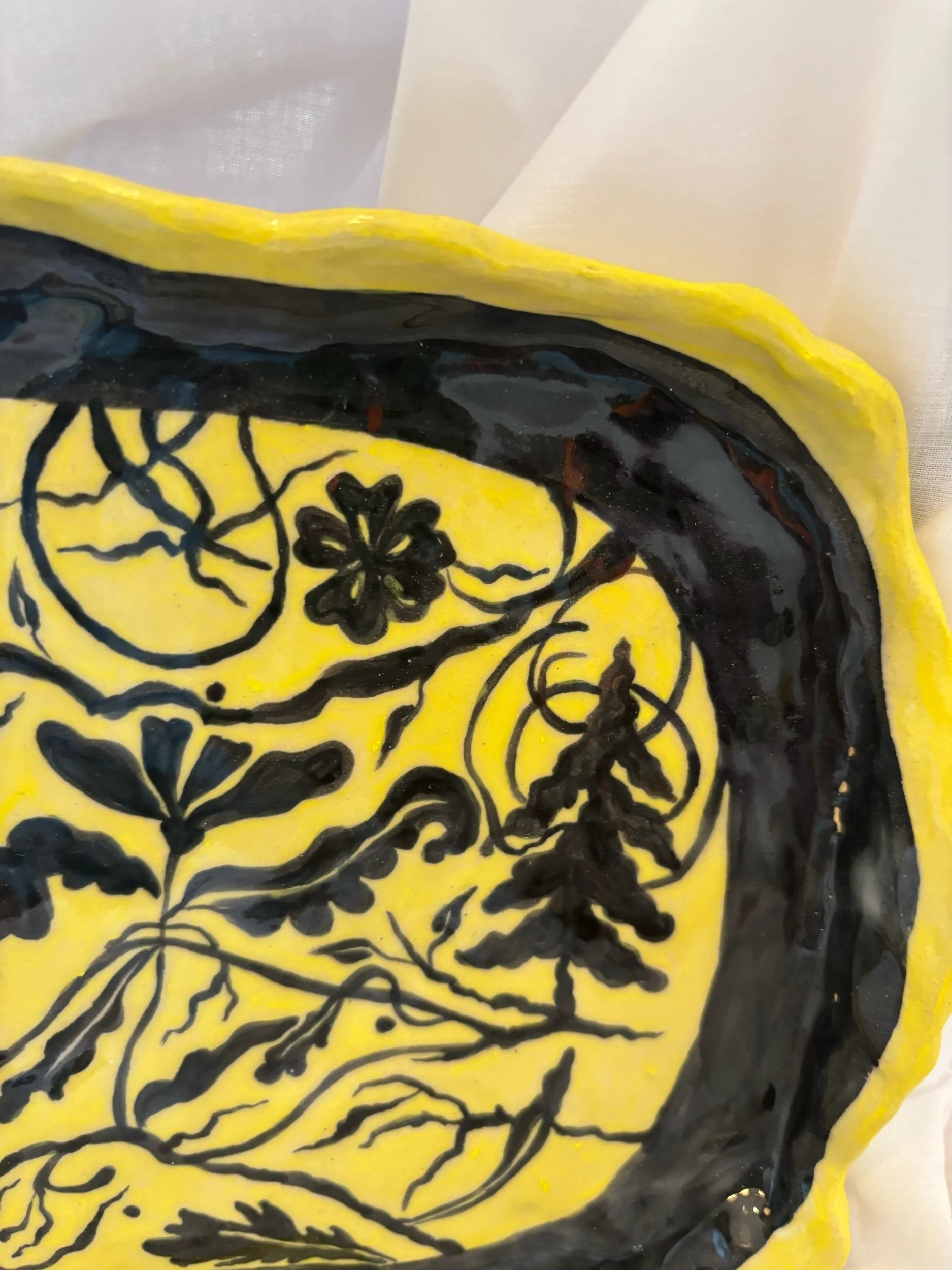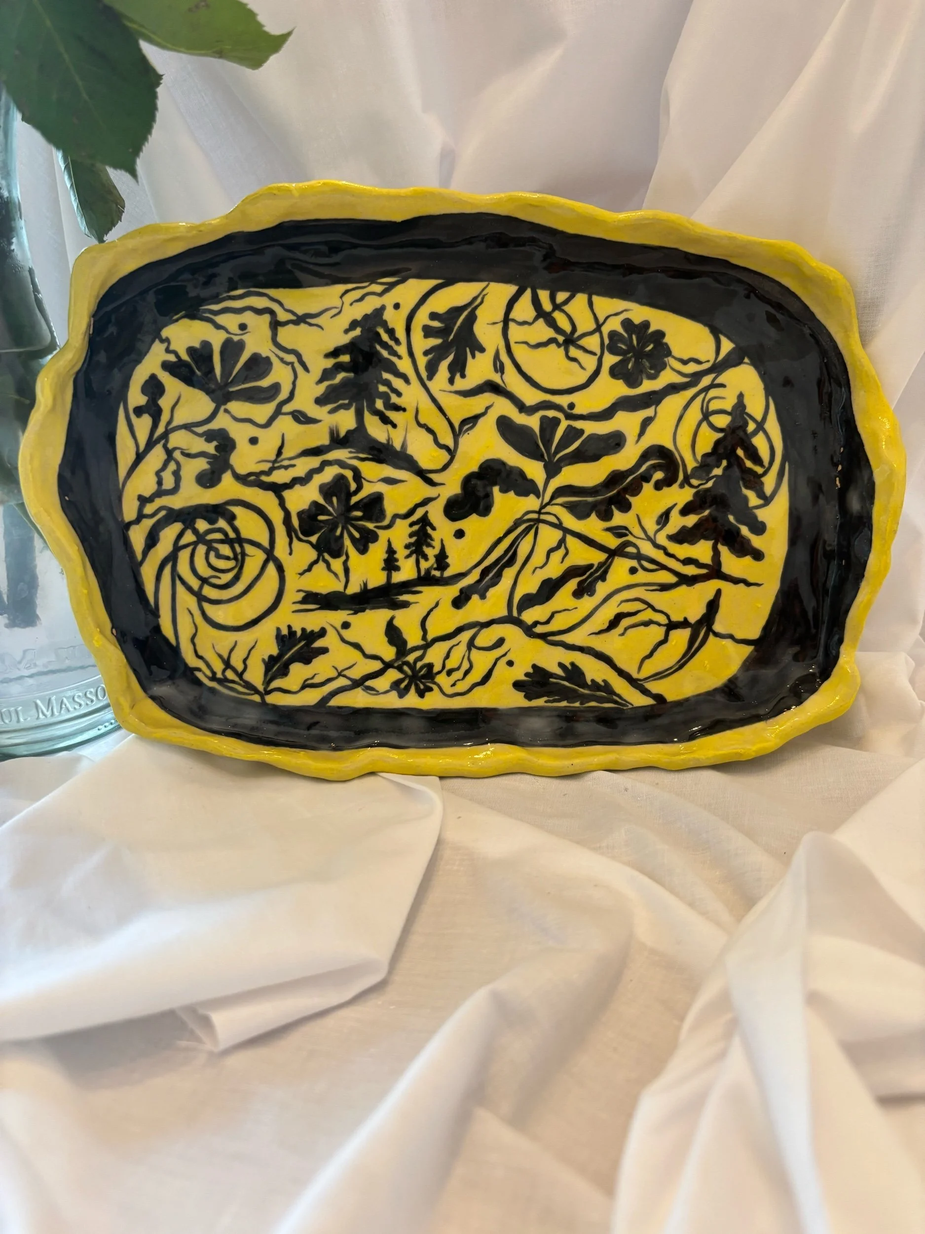 Inspired by summer walks this serving platter is handmade from stoneware clay and delicately painted with a memories of paths, flowers and sunshine. A special piece to brighten any dinner party or gathering.